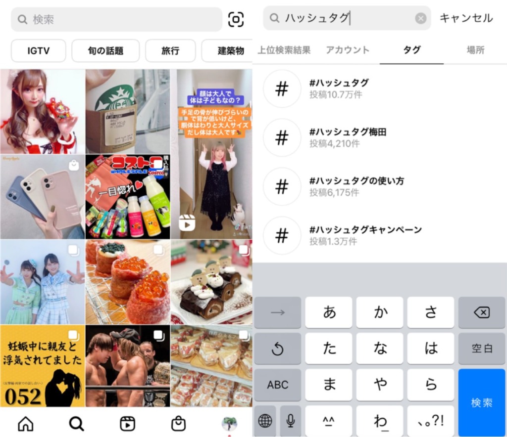 Google上では検索をすることを「ググる」 というのに対して、Instagram上でこのハッシュタグによる検索を「タグる」と呼ぶ文化があります。