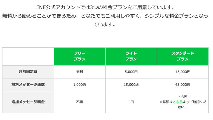 LINE公式アカウントオフィシャルサイト参照:LINE料金プラン
