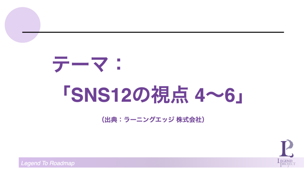 今月は(2022年6月9日)「SNS 12の視点」から4〜6をお伝えしてます。