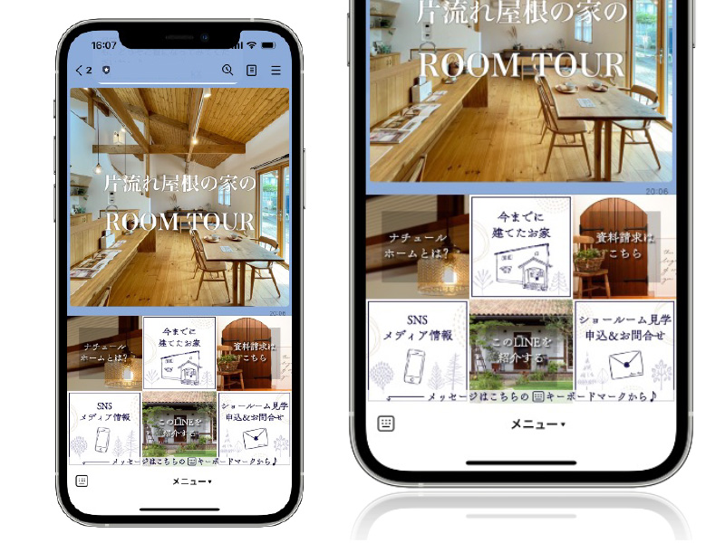 Instagram→HP→Lステップ(LINE公式アカウント)資料請求→ショールーム見学 ショールーム見学推移が5%→12%となる。社員1人以上の働きをしている ●Lステップ制作 (登録後のアンケート→ステップ配信、LP風の見せ方のメニュー、AIサプリ診断を搭載) ●動画制作企画・編集(ステップ配信搭載) 資料請求が紙で送っていたことからお客様へ届くまでの短縮となり、 顧客対応コストもカットになった事例です