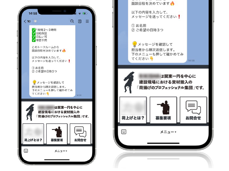 採用LINE公式アカウント 求人媒体からの面談日程確定をLINE公式アカウントにすることにより、 募集からアフターフォローまで一括管理 ●LINE公式アカウント制作